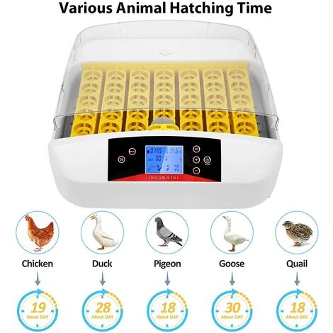 ăGrande capacitĂ© et polyvalenceă L’incubateur peut faire couler jusqu’Ă 55 Ćufs, facile Ă utiliser et Ă nettoyer, ce qui vous permet de gagner du temps. Convient pour tous les types de poules, canards, cailles, oies, oiseaux, pigeons, etc. Peut contenir 55 Ćufs de taille normale. Laissez l’incubateur fonctionner plus de 2 heures avant utilisation. Cela vous permettra de mieux comprendre ce qui se passe dans l’incubateur et de vous aider Ă effectuer les ajustements nĂ©cessaires.