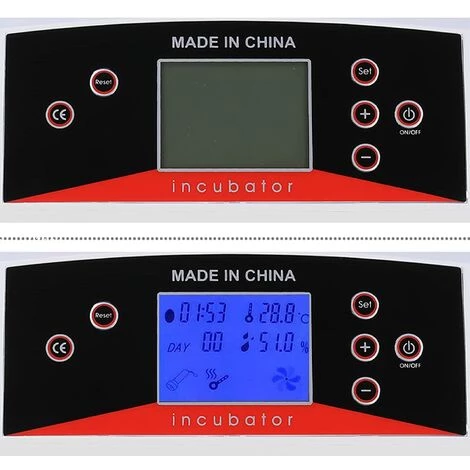 ăAffichage numĂ©rique LED, avertissement intelligent de tempĂ©rature et d’humiditĂ©ăL’incubateur est Ă©quipĂ© d’un affichage LED Ă©lectronique qui peut afficher la tempĂ©rature, l’humiditĂ© et d’autres informations de maniĂšre intuitive afin d’obtenir une surveillance efficace et un entretien prĂ©cis. Il suffit d’ajouter de l’eau. Ajoutez des Ćufs et rĂ©glez la tempĂ©rature et l’humiditĂ© dĂ©sirĂ©es. Le ventilateur intĂ©grĂ© rĂ©partit efficacement la chaleur uniformĂ©ment dans tout l’incubateur.