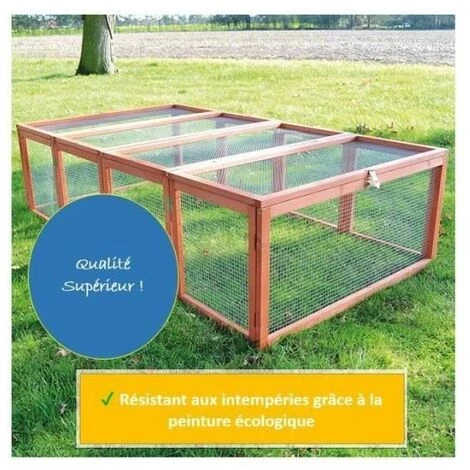 MONTAGE RAPIDE â Cet enclos en bois peut ĂȘtre rapidement mis en place pour permettre Ă votre animal de se dĂ©placer librement dans le jardin.