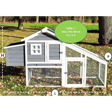 Le poulailler bicolore gris et blanc crĂ©e un look simple et moderne qui convient Ă tous les jardins. L’enceinte pour poulets est Ă©quipĂ©e d’un fil solide tout autour, afin que vos poules puissent passer beaucoup de temps Ă picorer, Ă gratter et Ă dormir au soleil.