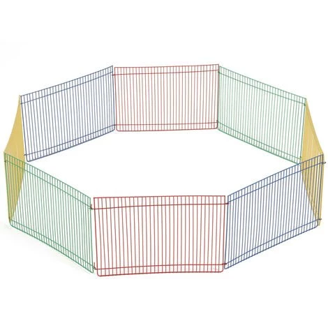 Avec cette clĂ´ture en mĂ©tal, votre lapin, cochon d’Inde ou autres rongeurs peuvent profiter de l’extĂ©rieur sans s’enfuir. L’enclos extĂ©rieur pour rongeurs est pliable et donc facile Ă ranger. Vous pouvez aussi vous amuser en l’installant sous diffĂ©rentes formes, comme octogonale ou carrĂ©e.