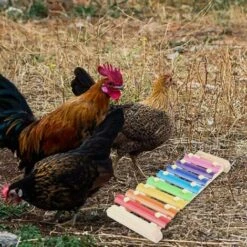 [Facile à réparer]: Des jouets amusants de xylophone de poulet peuvent être installés sur des poulaillers, des cages ou des clôtures. Ceci est un jouet de poulet décoratif, pas un véritable instrument de musique.