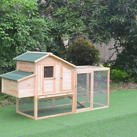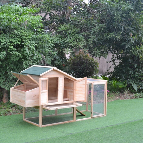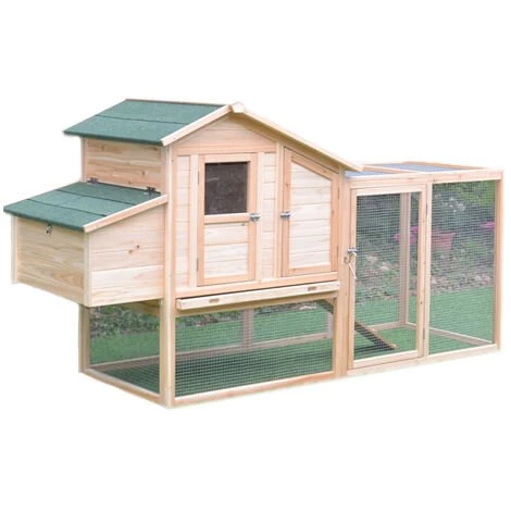 Prenez le temps de dĂ©couvrir le poulailler Java, un modèle tout en bois avec un toit recouvert de shingle vert effet tuiles et un grand parc grillagĂ© intĂ©grĂ©. Il offre une grande partie nuit dans laquelle pourront s’installer confortablement jusqu’Ă 6 poules.  Une maison Ă poules robuste et confortable Tout en bois et recouvert d’un toit double pente en shingle vert, le Java affiche un style plutĂ´t traditionnel Ă©voquant une petite ferme. Il est composĂ© de panneaux de bois de pin de qualitĂ© d’une Ă©paisseur comprise entre 10 et 12 mm fixĂ©s sur des montants de bois de 25 par 30 mm. Il garantit donc Ă vos poules une protection efficace contre le froid et les intempĂ©ries. Ce poulailler robuste est en outre Ă©quipĂ© d’un grand parc grillagĂ© en acier galvanisĂ© rĂ©sistant Ă la rouille. Il offrira une excellente durabilitĂ©.  Un modèle pratique et bien Ă©quipĂ© Ses ouvertures bien placĂ©es vous permettront d’accĂ©der facilement Ă l’intĂ©rieur de poulailler, ce qui est très pratique pour son entretien. Le nettoyage sera d’ailleurs bien facilitĂ© grâce Ă l’ajout d’un tiroir Ă dĂ©jections en mĂ©tal que vous couvrirez de litière ou de papier journal. DivisĂ© en deux zones de nidification, le pondoir sĂ©parĂ© peut s’ouvrir de l’extĂ©rieur. Son petit toit vous facilitera grandement la rĂ©colte des Ĺ“ufs ! Lorsque vos poules auront bien profitĂ© de leur espace extĂ©rieur protĂ©gĂ©, elles rentreront chez elles en empruntant la petite rampe en bois. Elles trouveront dans leur espace de vies Ă©clairĂ© par une fenĂŞtre en plexiglas deux perchoirs.  Un abri Ă l’isolation soignĂ©e PlacĂ©e en hauteur, la partie nuit est de ce fait mieux isolĂ©e puisqu’elle est ainsi Ă©cartĂ©e du sol et de l’humiditĂ© qu’il contient. L’espace gagnĂ© permettra Ă vos poules de gratter le sol Ă la recherche de gros vers bien gras. Toute la toiture du poulailler Java est recouverte de shingle, bardeau bitumĂ© et gravillonnĂ© Ă©tanche qui ne laissera pas passer l’eau.