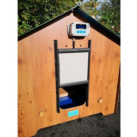 Le portier automatique ExtrĂŞme ChickenGuard convient Ă tout type de poulailler. Ce portier automatique est pilotĂ© par horloge programmable et/ou par sonde lumineuse. Il vous suffit de fixer le portier sur le poulailler et d’y attacher la trappe verrouillable ChickenGuard. Vous avez Ă©galement la possibilitĂ© d’ouvrir et de fermer le poulailler manuellement en pressant un simple bouton. Ce poulailler fonctionne dans des conditions mĂ©tĂ©o extrĂŞmes. Ouvre et ferme automatiquement la trappe de votre poulailler Grâce Ă ce portier automatique, vos poules seront protĂ©gĂ©es des prĂ©dateurs comme des renards ! Ce portier dĂ©veloppĂ© en collaboration avec notre partenaire anglais ChickenGuard gardera votre poulailler en sĂ©curitĂ©, grâce Ă un câble qui descend et remonte automatiquement la trappe, avec une course rĂ©glable. Avec ce modèle programmable avec cellule photo-Ă©lectrique, vous pouvez en plus choisir entre un pilotage par la luminositĂ© (jour/nuit ce qui permet d’ĂŞtre sĂ»r que toutes les volailles soient rentrĂ©es avant la fermeture), par horaires choisis ou en faisant un mĂ©lange des 2 possibilitĂ©s. CaractĂ©ristiques : Vous choisissez les heures d’ouverture et de fermeture et/ou le pilotage par luminositĂ© SensibilitĂ© lumineuse rĂ©glable très facilement Programmation digitale simple avec un menu en français et un Ă©cran rĂ©tro-Ă©clairĂ© Fonctionne avec 4 piles AA fournies (autonomie de plus d’1 an) Lève une trappe ou plusieurs trappes jusqu’Ă 4 kg IntĂ©gralement fabriquĂ© en Angleterre avec des composants de 1ère qualitĂ© L’Ă©lectronique est complètement protĂ©gĂ©e par une rĂ©sine Ă©poxy et un joint d’Ă©tanchĂ©itĂ© Une sĂ©curitĂ© empĂŞche l’appareil de forcer sur son mĂ©canisme en cas de blocage de la trappe Un voyant visible Ă distance (100 m) signale lorsque la trappe est fermĂ©e et quand les piles sont Ă changer Alimentation secteur possible via port USB (cordon non fourni) Dimensions : 12 x 8 x 5,5 c
