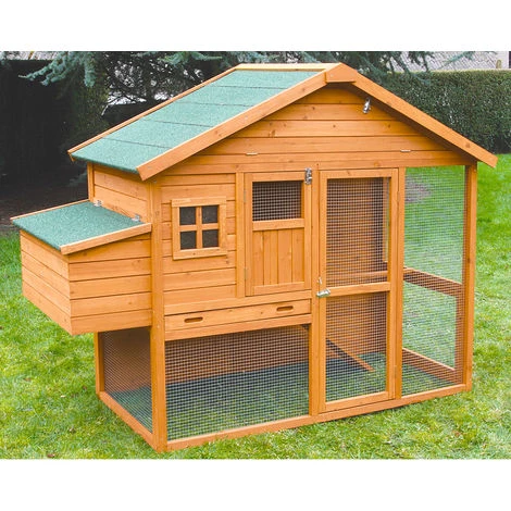 Tel un chalet clef en main pour vos poules, le poulailler Dakota dispose de tous les aménagements nécessaires à leur confort : perchoirs intérieurs et extérieur, trappe de sortie coulissante, porte et trappe d’accès à la volière, pondoir extérieur. Mais en plus, il est équipé d’un grand grenier pour le rangement et d’un tiroir à déjections rehaussé pour un nettoyage plus facile. En bois traité avec couverture en toile goudronnée, il est livré en kit, très facile à assembler.