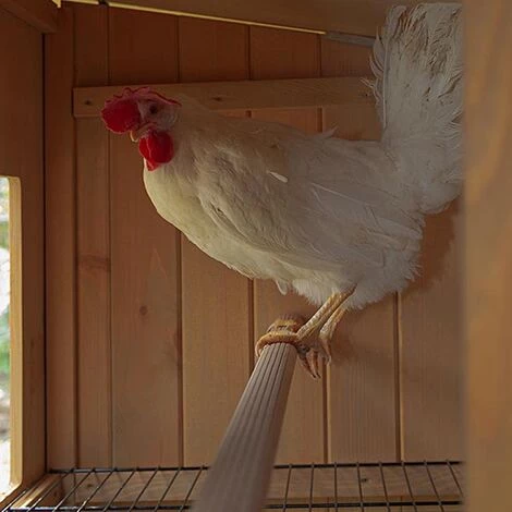 Ce modèle Hen House 30 est adaptĂ© pour accueillir jusqu’Ă 6 poules. SurelevĂ© du sol, la maisonnette repose sur des pieds solides Ă©quipĂ©s avec plastique pour garantir une meilleure isolation au sol. Une Ă©chelle permet aux poules d’entrer ou de sortir facilement, la porte d’entrĂ©e est coulissante. A l’intĂ©rieur, le hen house est divisĂ© en deux zones : l’une avec un perchoir mĂ©tallique et une grille de protection, l’autre dĂ©diĂ©e Ă la collecte des Ĺ“ufs, accessible de l’extĂ©rieur par une porte latĂ©rale Ă©quipĂ©e d’un verrou de sĂ©curitĂ©.