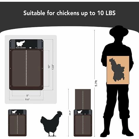 Dispose d’un design d’Ă©clairage : la porte automatique ultime pour chaque Ă©leveur de poulets. Cet ouvre-porte automatique pour poulailler dispose de fonctionnalitĂ©s Ă©tanches, d’une conception robuste, d’un capteur de lumière, d’une interface utilisateur simple et, plus important encore, d’un capteur de lumière Ă garder.vous la nuit comme le jour. FacilitĂ© d’utilisation : pas plus de 10 minutes pour installer la porte (pas de câblage compliquĂ© ou de câblage requis). Boutons faciles Ă programmer. S’allume automatiquement le matin et s’Ă©teint automatiquement la nuit. Tu peuxutiliser un capteur de lumière intĂ©grĂ© (LUX). AlimentĂ© par batterie : Au moins 3 ans d’autonomie dans toutes les conditions, nĂ©cessite 3 piles AA Non incluses Robuste : Convient aux conditions mĂ©tĂ©orologiques extrĂŞmes Étanche ; Fonctionne sous la pluie et la poussière et peut rĂ©sister Ă des tempĂ©ratures Ă©levĂ©es et basses.Facile Ă utiliser : signifie que votre porte fonctionnera d’elle-mĂŞme lorsque le soleil se lève et se fermera lorsque le soleil se couche. Fonction : capteur de lumière, relevable, Ă©tanche (IP44) Remarque : ce produit ne règle pas l’heure, il est uniquement sensible Ă la lumière. Matière : Plastique Couleur :Marron Dimensions : 35 x 24 x 3,7 cm Piles : 3 piles AA sont nĂ©cessaires Liste des produits non inclus : 1 x porte Coop non incluse