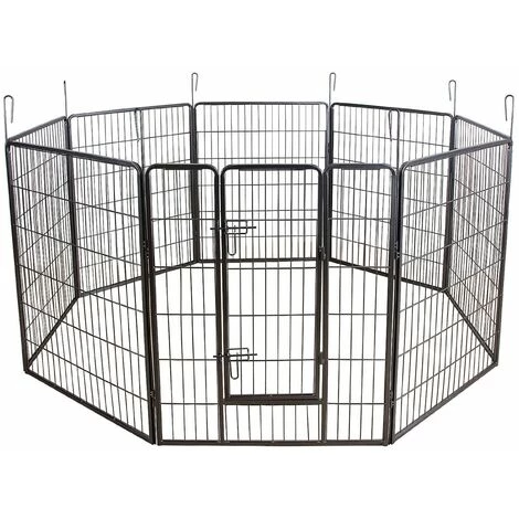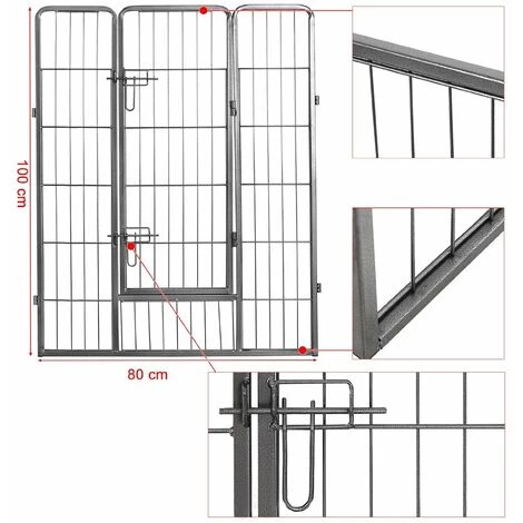 Présentation produit: Parc enclos cage pour chiens chiots animaux de compagnie 163 x 163 cm gris