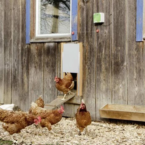 Grâce au contrĂ´le dĂ©pendant de la lumière du jour avec capteur de lumière, vos poulets peuvent entrer et sortir tous les jours sans votre prĂ©sence. En outre, le contrĂ´le manuel vous permet de vĂ©rifier vous-mĂŞme l’Ă©tat de vos poules en ouvrant la porte manuellement. Vous pouvez rĂ©gler l’heure avec une heure de retard pour les samedis et les dimanches avec le contrĂ´le dĂ©pendant de l’heure.