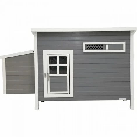 Poulailler Barney en matériau recyclé (60% plastique 40% bois), avec 2 ouvertures, 2 nids et 2 perchoirs, un toit rabattable avec fixation, imperméable, inodore et résistant aux UV