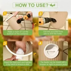 FACILE Ă€ INSTALLER: Il vous suffit de prĂ©parer le rĂ©cipient et de percer, aucun matĂ©riel supplĂ©mentaire n’est requis, vous pouvez donc facilement assembler la mangeoire Ă poulet plastique en quelques minutes. Ce lot d’accessoires pour poulet kit comprend 4 jeux de mangeoires pour poulet et une scie cloche noire (3″).