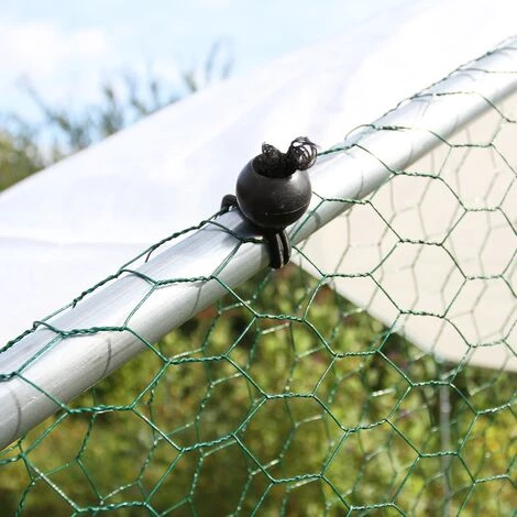 Une house imperméable est fournie gratuitement pour protéger vos animaux de la pluie ainsi que les UV. Cet enclos poulailler leur donnera une amplitude d’espace à vos animaux et assez d’espace pour mettre un poulailler fournissant un endroit sécure.