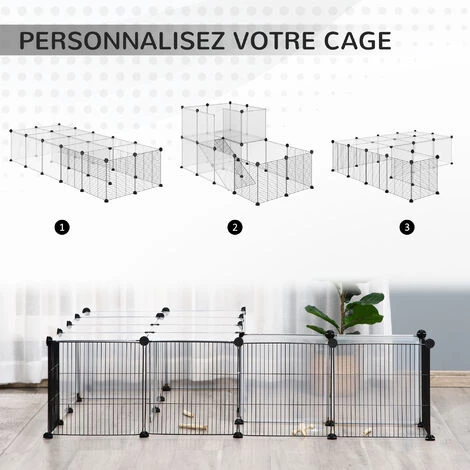 Cette cage pour petits animaux de compagnie est l’Ă©quipement idĂ©al pour permettre Ă vos petits compagnons de s’amuser confortablement et en toute sĂ©curitĂ©. Ce modèle est spĂ©cialement conçu pour les animaux de petite taille tels que les cobayes, les lapins, les chinchillas ou les cochons d’Inde. Montez ce parc enclos selon vos envies ou en fonction de la configuration de la pièce grâce aux connecteurs multi-angles. La structure en fil d’acier et panneaux en rĂ©sine PP avec bords arrondis est un gage de soliditĂ© tout en Ă©vitant aux animaux de se blesser.