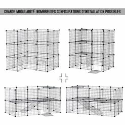 Cette cage pour animaux domestiques est l’accessoire idĂ©al pour permettre Ă vos petits compagnons de s’amuser confortablement et en toute sĂ©curitĂ©. Ce modèle est spĂ©cialement conçu pour les animaux de petite taille tels que les cobayes, les lapins ou les cochons d’Inde. Montez cet enclos pour animaux domestiques selon vos envies ou en fonction de la configuration de la pièce grâce aux connecteurs multi-angles. La structure en fil mĂ©tallique avec bords arrondis est un gage de soliditĂ© tout en Ă©vitant aux animaux de se blesser.