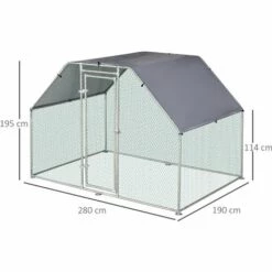 Conçu, pensé par des éleveurs spécialisés dans la volaille, ce poulailler chenil robuste en acier galvanisé d’une grande surface de 5,32 m² permettra à votre basse-cour un grand espace pour gambader dans le confort et la sécurité absolue ! Ce parc grillagé avec maillage resserré et porte verrouillable offrira un espace clos protégeant ainsi vos volailles de tous les prédateurs ! Caractéristiques : – Enclos poulailler chenil grande taille dim. 2,8L x 1,9l x 1,95H m soit une surface de 5,32 m² idéale pour que votre basse-cour puisse gambader dans le confort et la sécurité absolue ! – Poulailler chenil entièrement couvert avec une bâche en Oxford haute densité 210D (bâche imperméable & anti-UV fournie avec cordons de maintien à la structure) – Large porte à fermeture sécurisée par loquet – Enclos, habitat extérieur idéal pour un élevage de 4 à 5 poules. Ses grandes dimensions offriront à vos animaux une liberté de mouvement et un espace optimal pour leur plus grand confort – Vous pouvez compléter cette volière en installant un poulailler bois à l’intérieur pour permettant la ponte de vos poules et ainsi de récolter de bons oeufs frais tous les jours – Conception par des éleveurs spécialisés dans la volaille et fabrication de qualité en acier galvanisé (châssis tubulaire Ø 3,2 cm) avec grillage maillage resserré hexagonal en plastique – Montage facile à l’aide du manuel d’assemblage illustré fourni Spécifications : – Couleurs : gris, gris métal – Matériaux principaux : acier galvanisé, tissu Oxford haute densité, plastique – Dim. totales : 2,8L x 1,9l x 1,95H m – Dim. porte : 50l x 170H cm – Dim. bâche : 334L x 190l cm – Hauteur avant-toit : 114 cm – Livraison effectuée en 2 colis – Réf. : D51-115