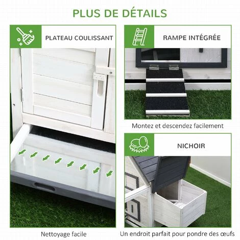 Ce poulailler clapier modèle villa de luxe mutli-Ă©quipĂ©e permettra Ă vos poules, lapins ou autres rongeurs de vivre et se dĂ©velopper en toute sĂ©rĂ©nitĂ© ! Conçu et fabriquĂ© en bois massif de pin avec clotĂ»re en grillage galvanisĂ©, vos animaux pourront grandir en toute sĂ©curitĂ© et en tout confort grâce Ă l’Ă©quipement multiple de la maison : rampe, portes, nichoirs, perchoirs, plateau excrĂ©ment, etc… De quoi satisfaire les Ă©leveurs les plus exigents !