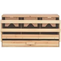 Les 3 compartiments spacieux permettent Ă 3 grandes poules de s’installer et de pondre. Les Ĺ“ufs tomberont doucement Ă travers les trous sur le sol et dans le tiroir sous-jacent, ce qui facilite la collecte des Ĺ“ufs. La couche infĂ©rieure amovible vous permet de nettoyer facilement. Les perchoirs peuvent ĂŞtre repliĂ©s afin d’Ă©viter que les poules perchent la nuit. Le toit plat le rend confortable pour les poules Ă s’installer et vous permet Ă©galement d’empiler facilement plusieurs nichoirs. Vous pouvez consulter notre boutique pour les nichoirs avec un toit en pente.