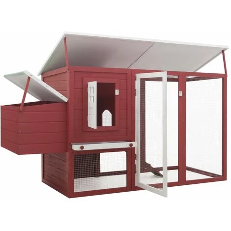 Cette cage Ă poulet en bois offre un grand endroit confortable.