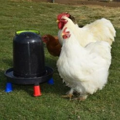 Abreuvoir monté sur 4 pieds pour poules en plastique recyclé. Contenance : 10L. Couleur : Aléatoire. Gamme : Eco..