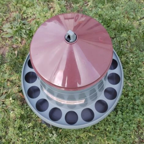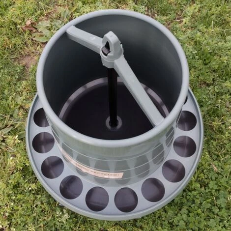 Mangeoire pour poules écologique montée sur 4 pieds, en plastique recyclé. Contenance : 8Kg. Couleurs aléatoires : violet aubergine, gris anthracite, vert foncé ou bleu nuit. Gamme : Eco..