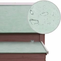 Fait en pinède de haute qualitĂ©, le poulailler est durable. Le tissu vert Ă©tanche sur les toits protège de la pluie, crĂ©ant des endroits chauds et confortables pour se reposer Ă l’intĂ©rieur de la cabane.