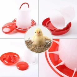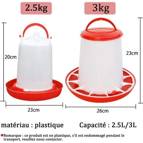 Cette mangeoire en plastique robuste est idale pour les petits troupeaux de poulet.