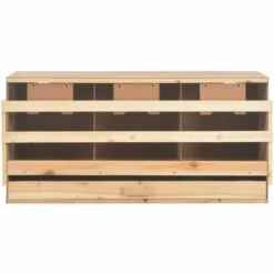 Ce nichoir fournira Ă vos poules un endroit confortable et protĂ©gĂ© pour pondre leurs Ĺ“ufs ! Les 3 compartiments spacieux permettent Ă 3 grandes poules de s’installer et de pondre. Les Ĺ“ufs tomberont doucement Ă travers les trous sur le sol et dans le tiroir sous-jacent, ce qui facilite la collecte des Ĺ“ufs. La couche infĂ©rieure amovible vous permet de nettoyer facilement. Les perchoirs peuvent ĂŞtre repliĂ©s afin d’Ă©viter que les poules perchent la nuit. Le toit plat le rend confortable pour les poules Ă s’installer et vous permet Ă©galement d’empiler facilement plusieurs nichoirs. Vous pouvez consulter notre boutique pour les nichoirs avec un toit en pente. FabriquĂ© en bois de pin solide et de MDF, le pondoir est conçu pour une utilisation Ă long terme. Le nichoir est facile Ă assembler.