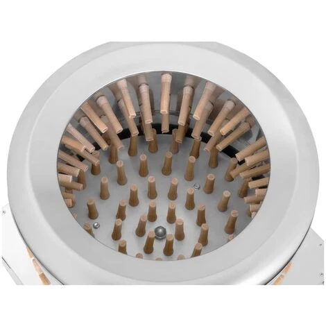 Vous élevez de la volaille mais n’avez pas le temps de plumer à main vos poulets et canards ? Alors la plumeuse rotative WI-PPM-55 de Wiesenfield est la solution idéale, car elle accomplit en quelques secondes cette tâche sinon laborieuse et chronophage. L’appareil de qualité plume de 3 à 4 poulets par cycle grâce à son puissant moteur de 1 450 W et à son tambour tournant à une vitesse de 280 tr/min. Ses 131 doigts en caoutchouc et son système d’arrosage intégré prennent en charge le plumage. La machine est équipée d’une grande chute qui évacue les plumes, sous laquelle un récipient de collecte peut être placé. Comme la plumeuse à poulet est presque entièrement faite d‘inox durable et résistant à la corrosion, elle est indispensable pour les agriculteurs et les éleveurs amateurs.