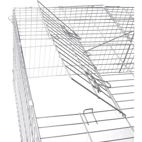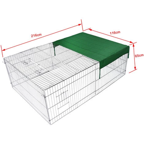 La construction solide en mĂ©tal chromĂ© dispose de 4 portes d’entrĂ©e et d’une taille totale de 216 x 116 x 65 cm. Y accĂ©der est très simple. L’enclos se verrouille de manière sĂ»re. Par ailleurs, l’enclos est muni d’un toit grillagĂ©, qui protège vos animaux des prĂ©dateurs et de d’autres dangers Ă©ventuels. Plus besoin de les surveiller en permanence. La cage est munie Ă©galement d’une bâche qui les protĂ©gera des rayons de soleil et leur offrira un endroit Ă l’ombre, qui sera le bienvenu par les jours de grande chaleur.
